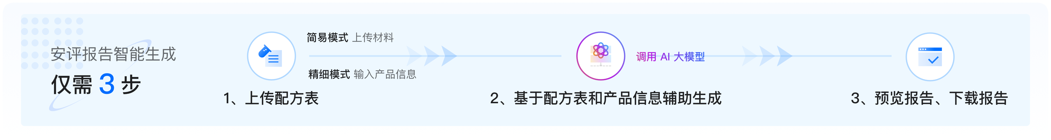 广东省内化妆品生产企业登录十大网络赌博网站排名 企业专属网页,通过“粤安评”工具,仅需三步即可自动生成一份格式符合要求的完整版安评报告样稿,并可供下载编辑,便于企业参考使用。